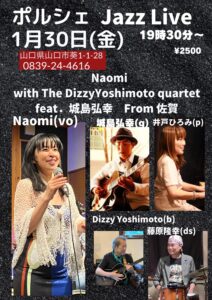 ○1/30(金)ポルシェ(山口市) 『Naomi with The Dizzy Yoshimoto quartet  feat.城島弘幸』