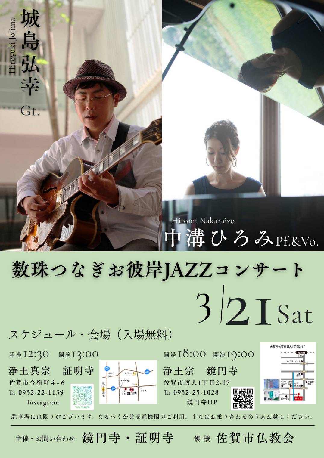 13時開演 浄土真宗 証明寺  19時開演 浄土宗 鏡円寺 入場無料
